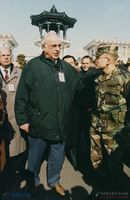 민주당 김영삼 총재 초청 정책 세미나에서 의견을 나누고 있는 민통련 김승훈 신부와 문익환 목사