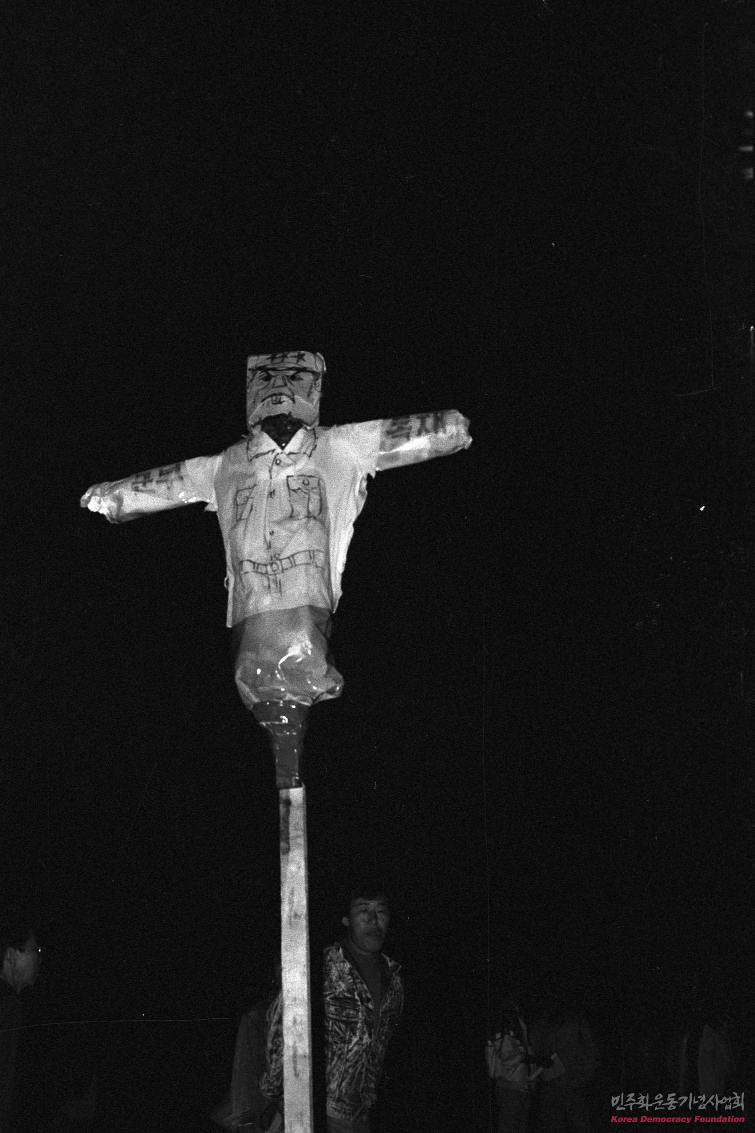 노동운동 탄압 분쇄 결의대회가 열린 명동성당 마당에 높이 세워진 군사독재 허수아비