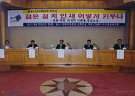 한겨레 신문 창간 발기인 대회에서 손님맞이를 하는 김인한과 최장학