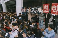 DJ 지지 기자회견 이후, 담소하는 민통련 간부들