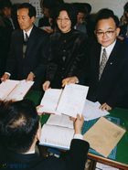 한겨레사회연구소 창립식 뒤풀이에서 나란히 서있는 김병오, 김승균, 예춘호