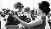 김대중 선생 단일후보 선포식이 열린 고려대 운동장 연단에서 학생들을 격려하는 이문영 교수