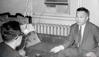 노조대표들로부터 농성경위를 듣고 있는 민통련 문익환 의장