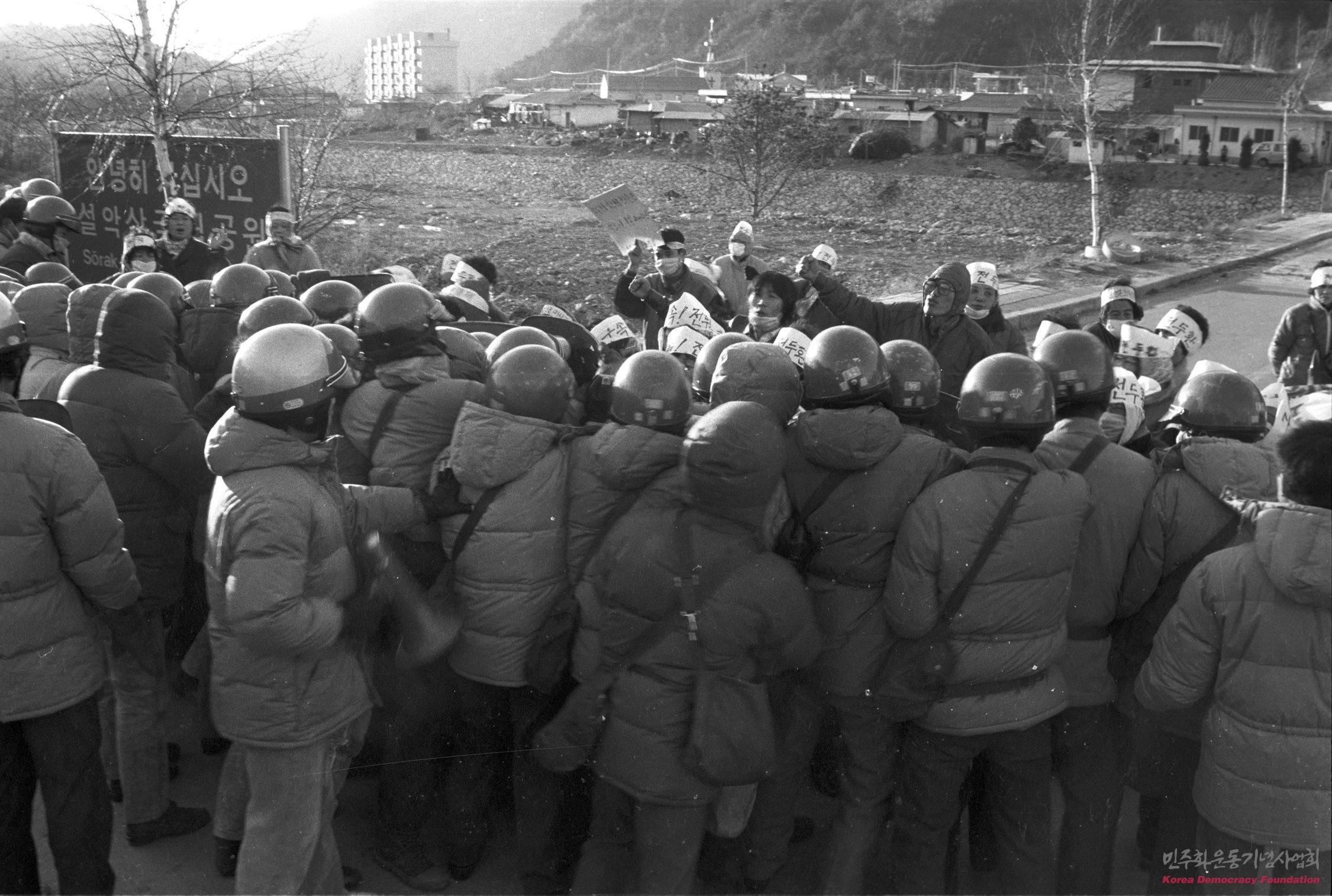 백담사로 가는 골짜기 입구를 막아선 경찰들