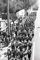 막아선 경찰의 본서인 인제경찰서로 가기 위해 국도를 행진하는 민가협 회원들