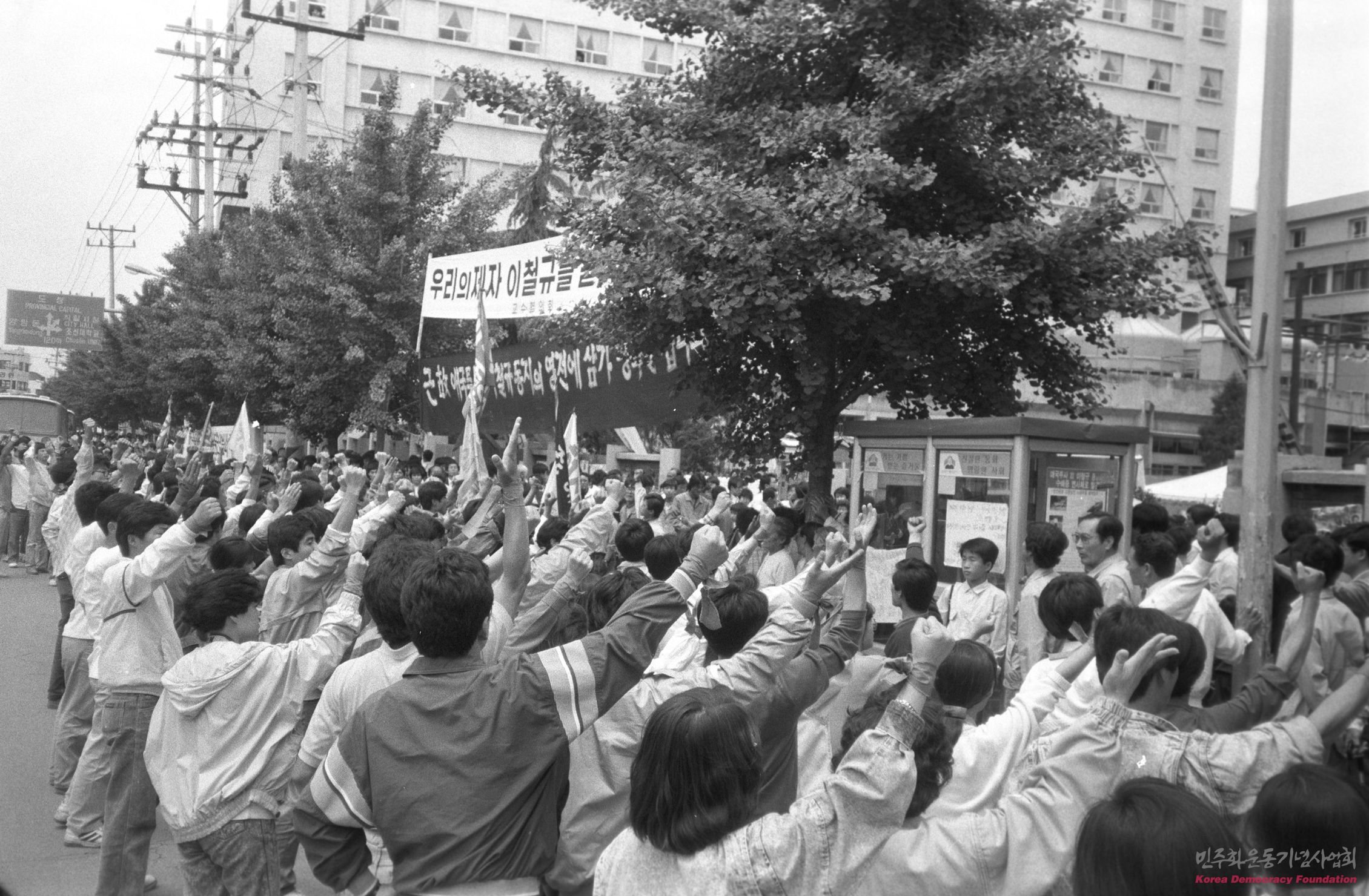 거리에서 노태우 정권 퇴진 구호를 외치는 시위대