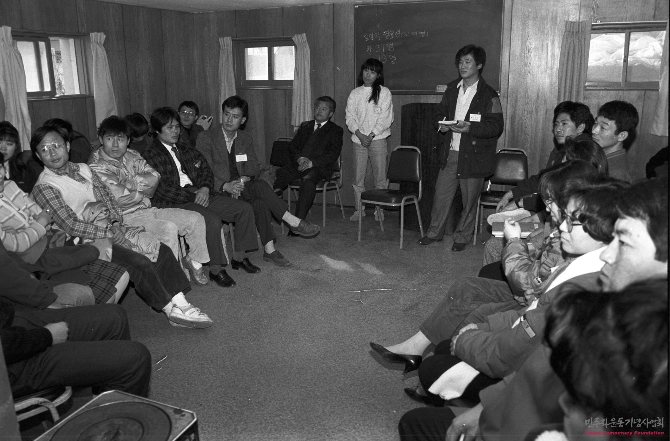 전노신 전국노보 편집진 교육에서 둥글게 둘러앉아 교육을 받는 모습