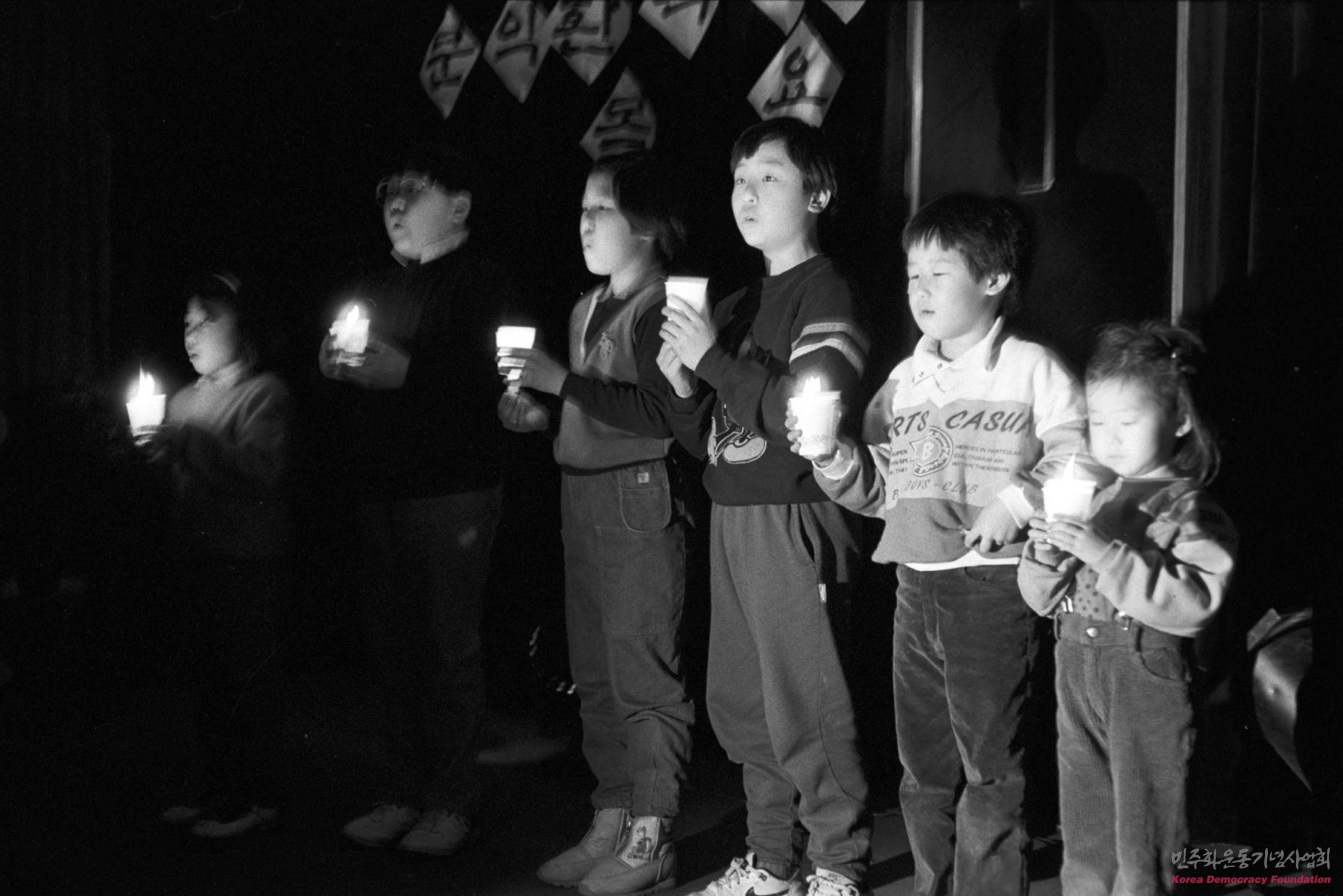 촛불을 들고 연단에 선 아이들