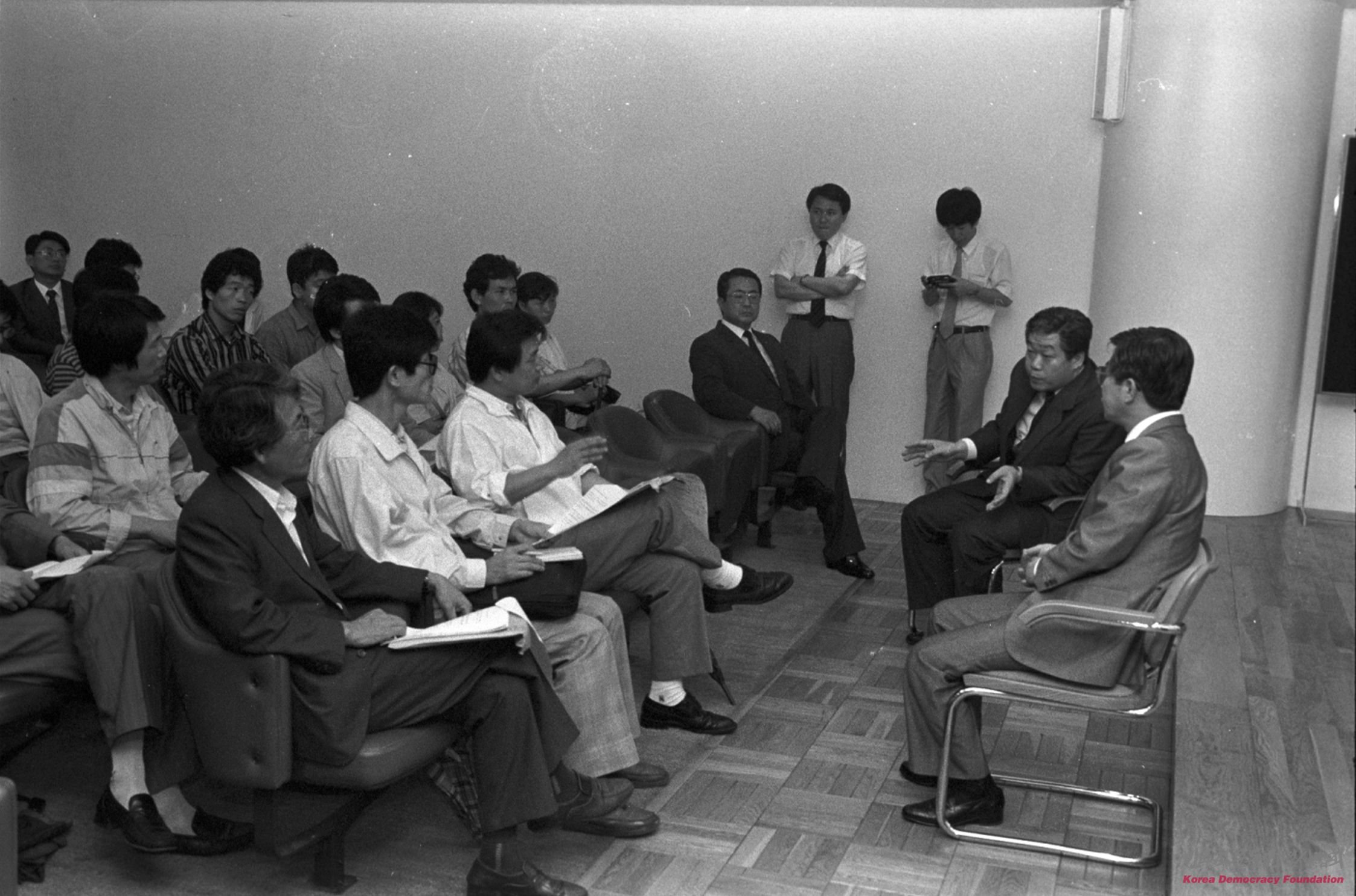 사무실에서 경찰난입 진상조사 문제에 대해 토론중인 모습
