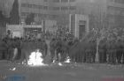 재소자 폭행에 대해 연좌시위 하는 사람들을 둘러싼 전경들