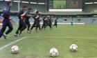 한양대학교에서 열린 도시빈민 생존권을 위한 진군대회에서 깃발을 흔들며 시위하는 학생들