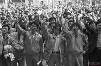 민자당 일당독재에 반대하는 플래카드를 내걸고 시위를 하는 학생들