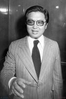 전태일 열사의 무덤 옆에 앉은 이소선 여사의 모습