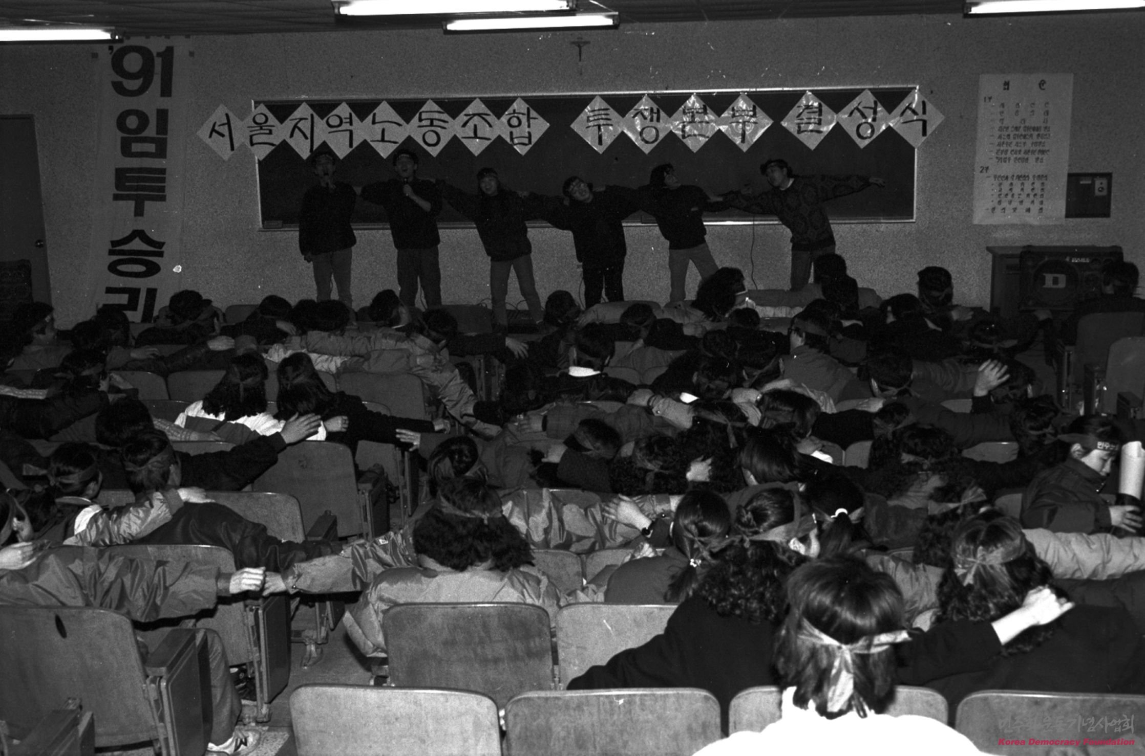 투쟁구호를 외치는 투쟁본부 결성식 참가자들