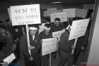 물가폭등과 민생파탄의 원흉인 민자당 분쇄를 외치며 가두시위를 벌이는 수서규탄대회 참가자들