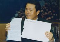 전대협 간부와 악수를 나누는 학생의 모습