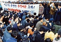 장기수 석방과 국가보안법 철폐를 촉구하며 가두시위 중인 민가협 어머니들