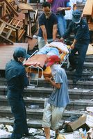 경찰의 최루탄 발포에 괴로워하며 시위 주변을 황급히 떠나는 시민들