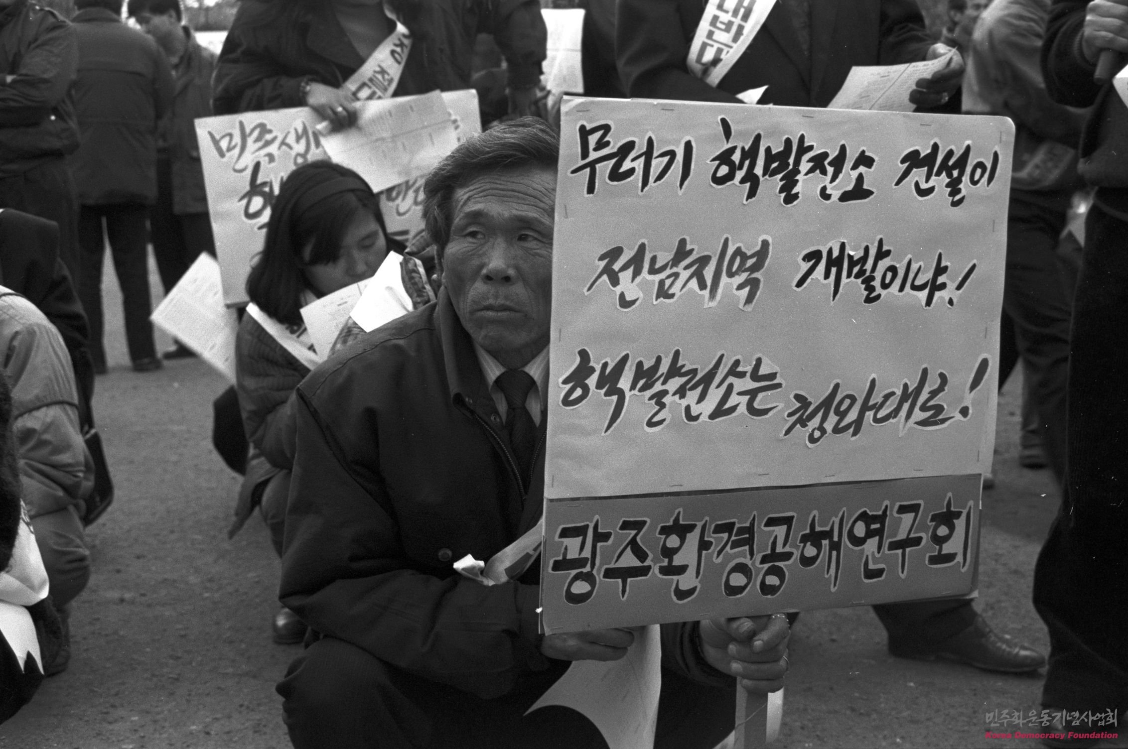 전남지역의 핵폐기장, 핵발전소 건설저지 결의대회에 참가한 한 노인