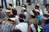 태극기를 목에 걸고 학살자 비호 김영삼 규탄시위에 참가한 남학생