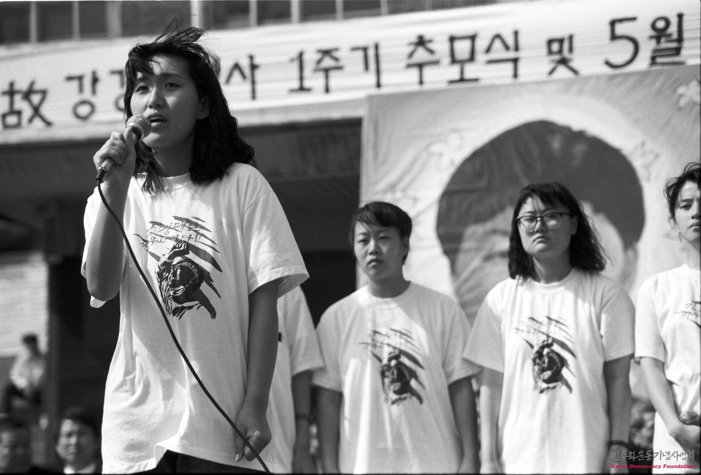 강경대 1주기 추모행사 중 무대에 오른 여학생들