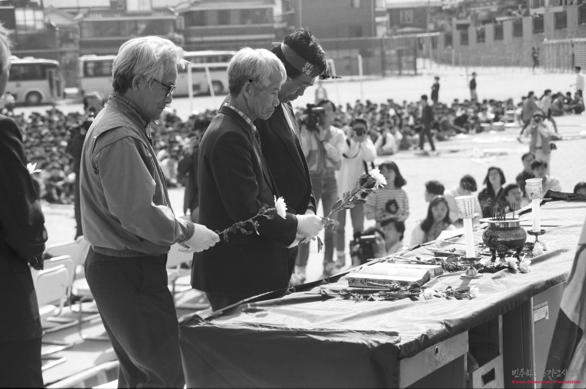 강경대 열사의 영정에 헌화하는 민주인사들