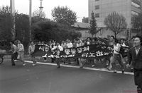 휴전협정 폐기와 평화협정 체결을 요구하는 범민족대회 참가단의 거리 선전전