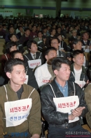선전물을 제작하고 있는 범민련 소속 주한미군철수 통일선봉대