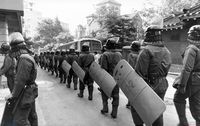- 5월광장어머니회는 74년이 후 군사정권하에서 한해 6백∼7백 명씩의 실종자가 발생하자 어머니들이 사라진 자식의 이름이 적힌 흰 스카프를 매고 부에노스아이레스의「5월광장」에서 시위 등 민주화운동을 벌이며 만든 모임