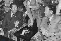 통일운동체 발기인대회에서 꽃다발을 받고 있는 민주인사들