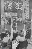 자주평화통일민족회의 준비위원회의 집들이를 끝내고 다과를 즐기는 회원들