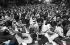 전지협탄압규탄 노동자.시민대회에서 묵념을 하고 있는 참가자들