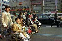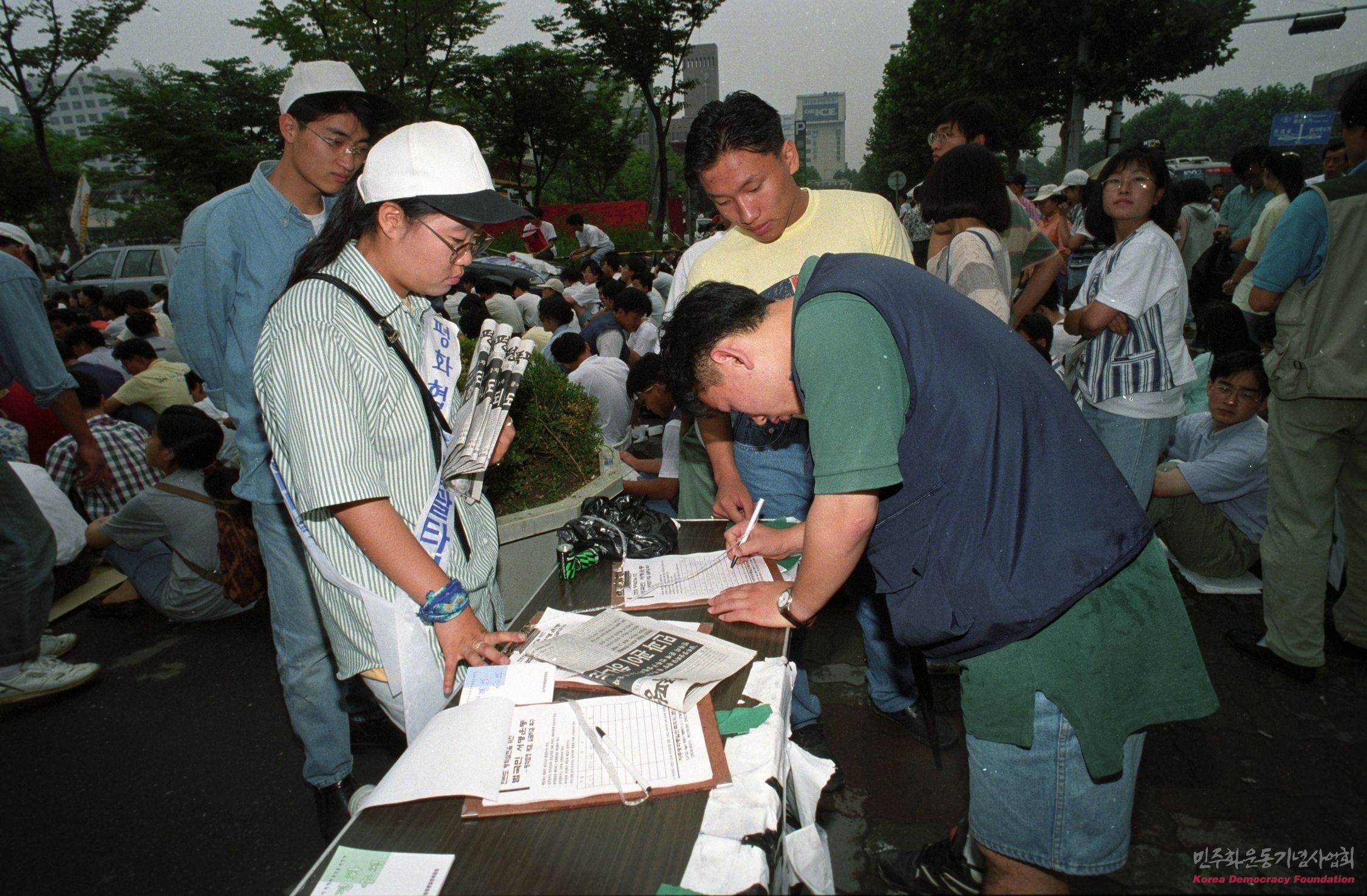 전지협탄압규탄 노동자.시민대회에서 자주평화협정을 위한 범국민서명운동을 받고 있는 참가자