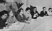 노동절 기념대회의 설문조사에서 통일에 반대하는 세력으로 안기부와 경찰, 여당, 관계부처에 스티커를 붙이는 노동자들