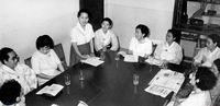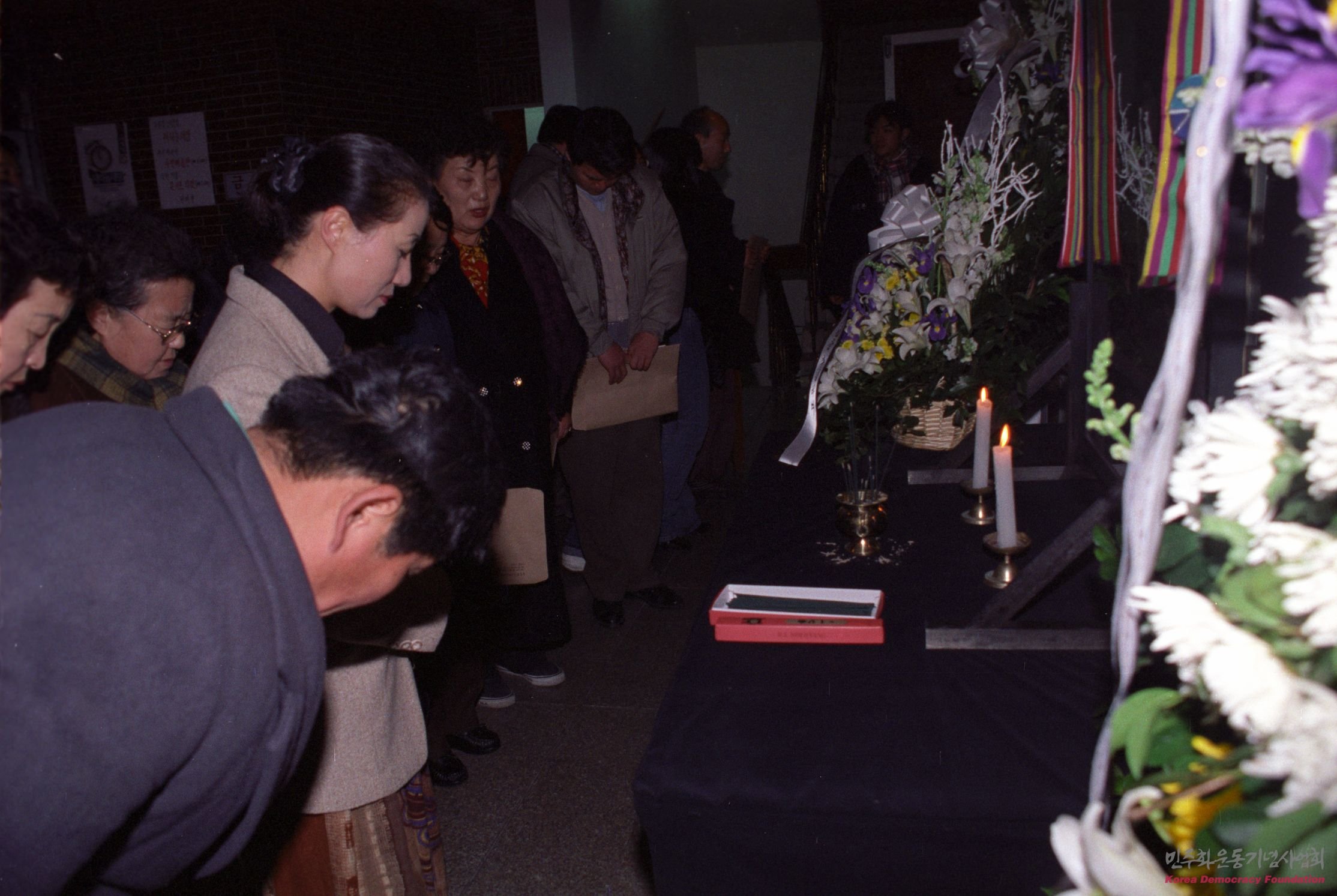문익환 목사 4주년 추모식에서 묵념하는 사람들