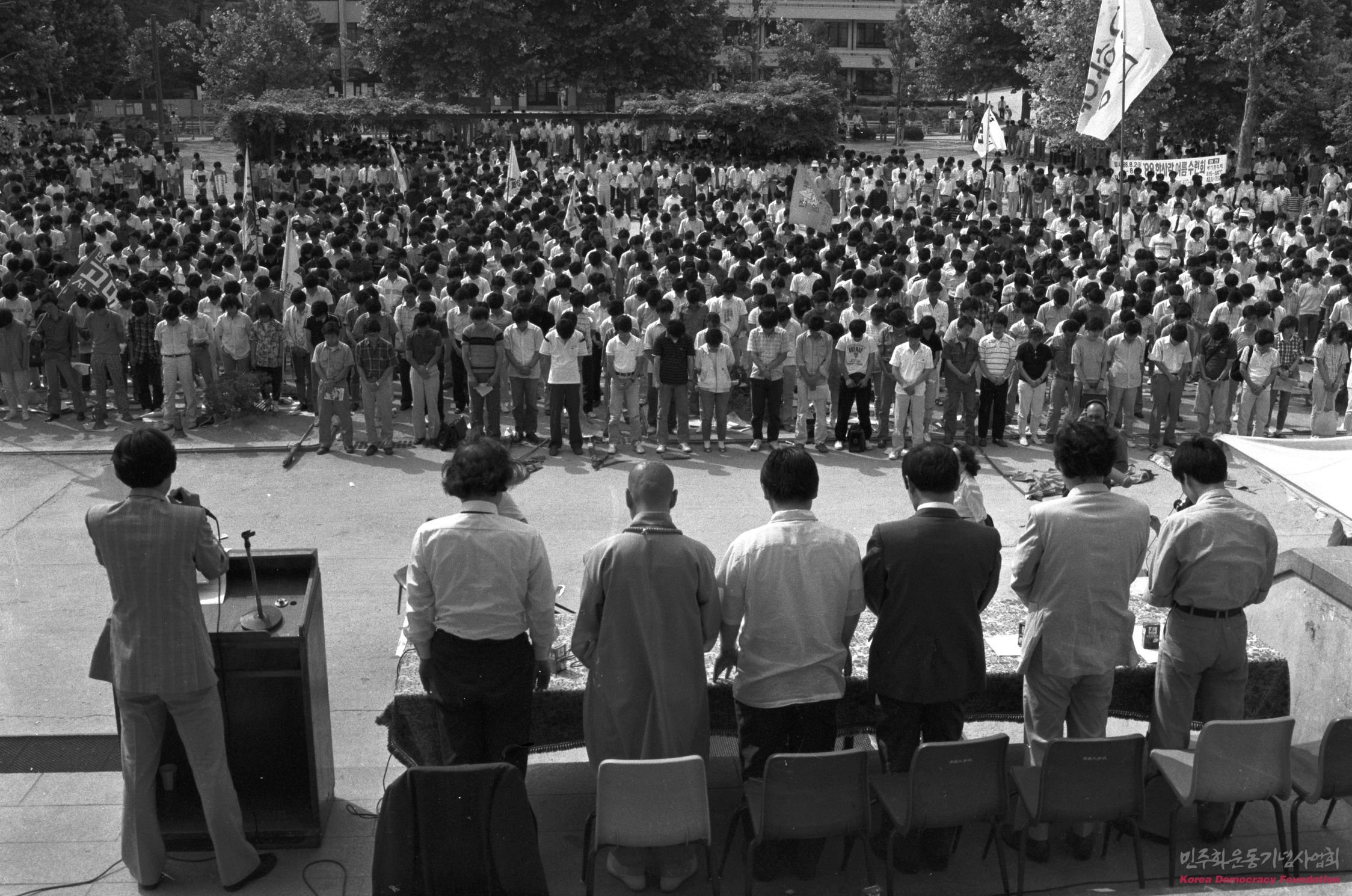범국민 대토론회 개회 전 민주영령께 묵념을 드리는 모습