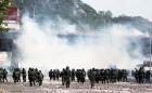 김근태 석방 구속에 대한 비난 구호를 외치는 민주인사들