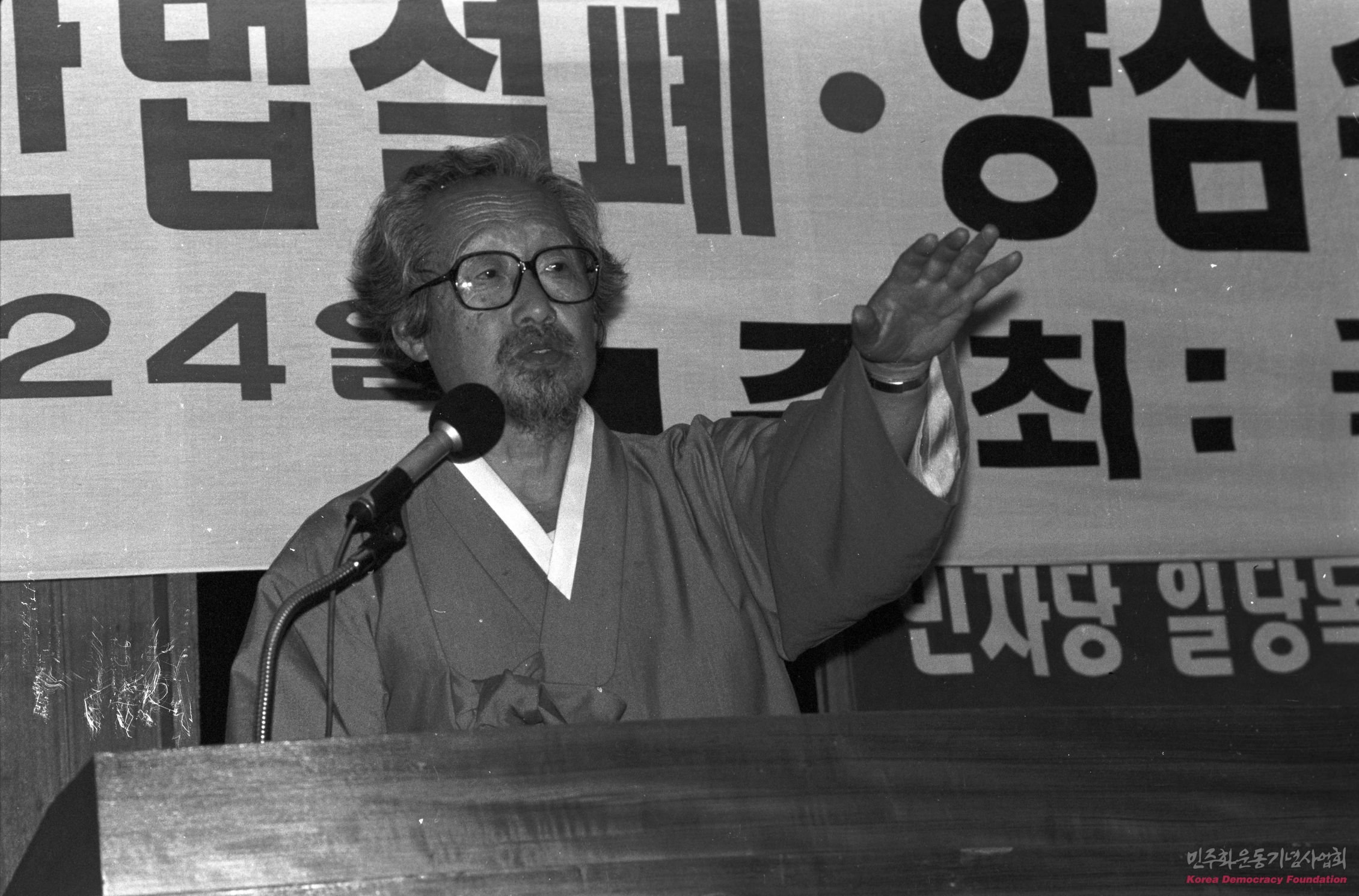 양심수 석방 및 국가보안법 폐지를 요구하는 연설을 하고 있는 문익환 목사 2