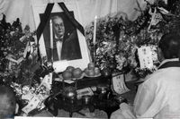 민주화 영령을 위로하는 촛불을 들고 노래를 합창하는 집회 참가자들