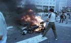 구속된 양심수를 대변하여 독재감옥을 화형시키는 장면