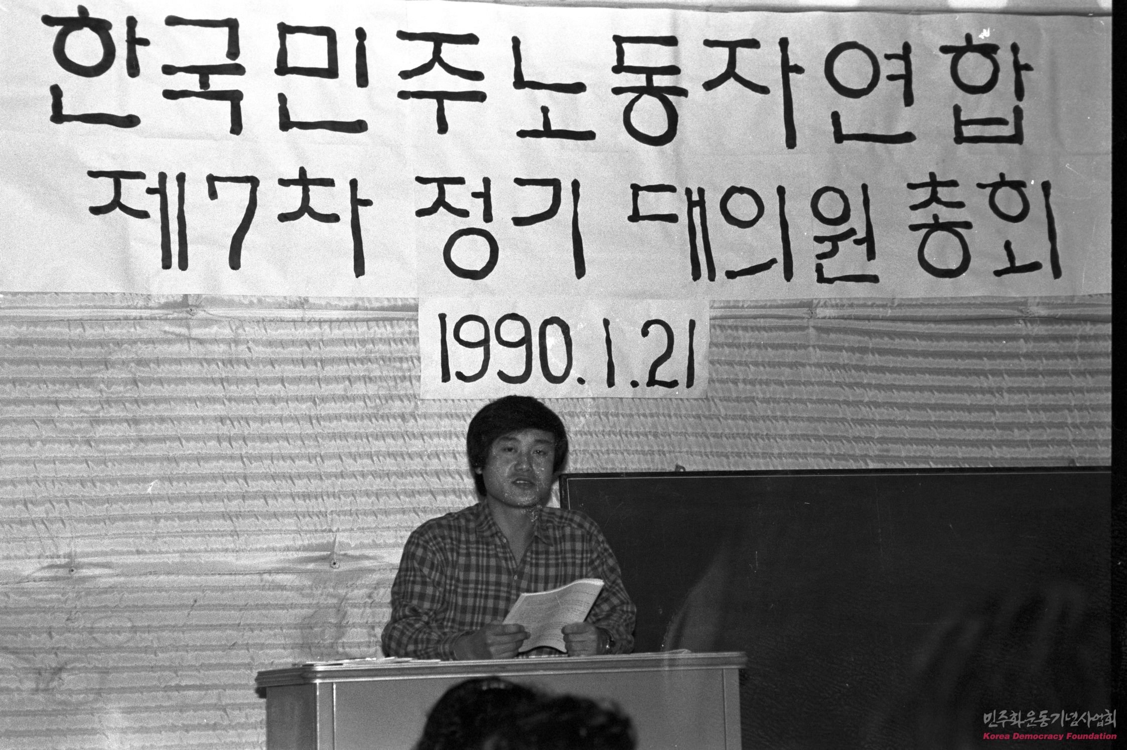 한노련 제7차 정기 대의원총회를 진행하는 사회자 모습