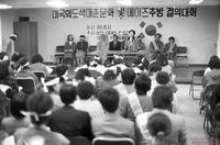 KBS자주수호사원비상총회에서 연설을 하는 노조 대표자 모습