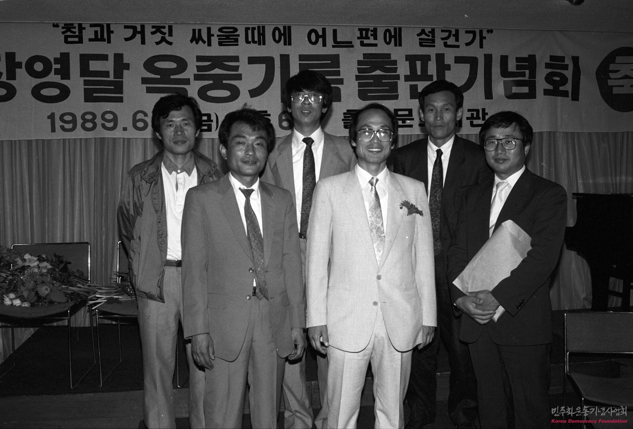 옥중기록 출판기념회에서 참석인사들과 기념촬영을 하는 장영달