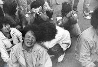 우루과이라운드 국회비준 반대구호를 외치며 거리시위에 나선 대학생 시위대