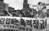 - 생산자 및 기증자가 ‘박용수’인 사진의 사용은 구매신청을 클릭하여 직접 사진 구매 신청을 하실 수 있습니다. 생산자 및 기증자가 ‘경향신문사’인 사진의 사용은 경향신문사 담당자(02-3701-1635)를 통해 구매하실 수 있습니다. 그 외의 생산자 및 기증자는 민주화운동기념사업회 사료관 담당자( h_jungwon@kdemo.or.kr / 031-361-9586 )에 문의바랍니다.