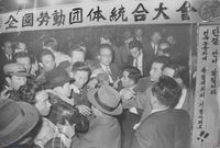 2차 정기총회에서 선언문 채택 뒤에 만세 삼창 하는 총력안보협의회