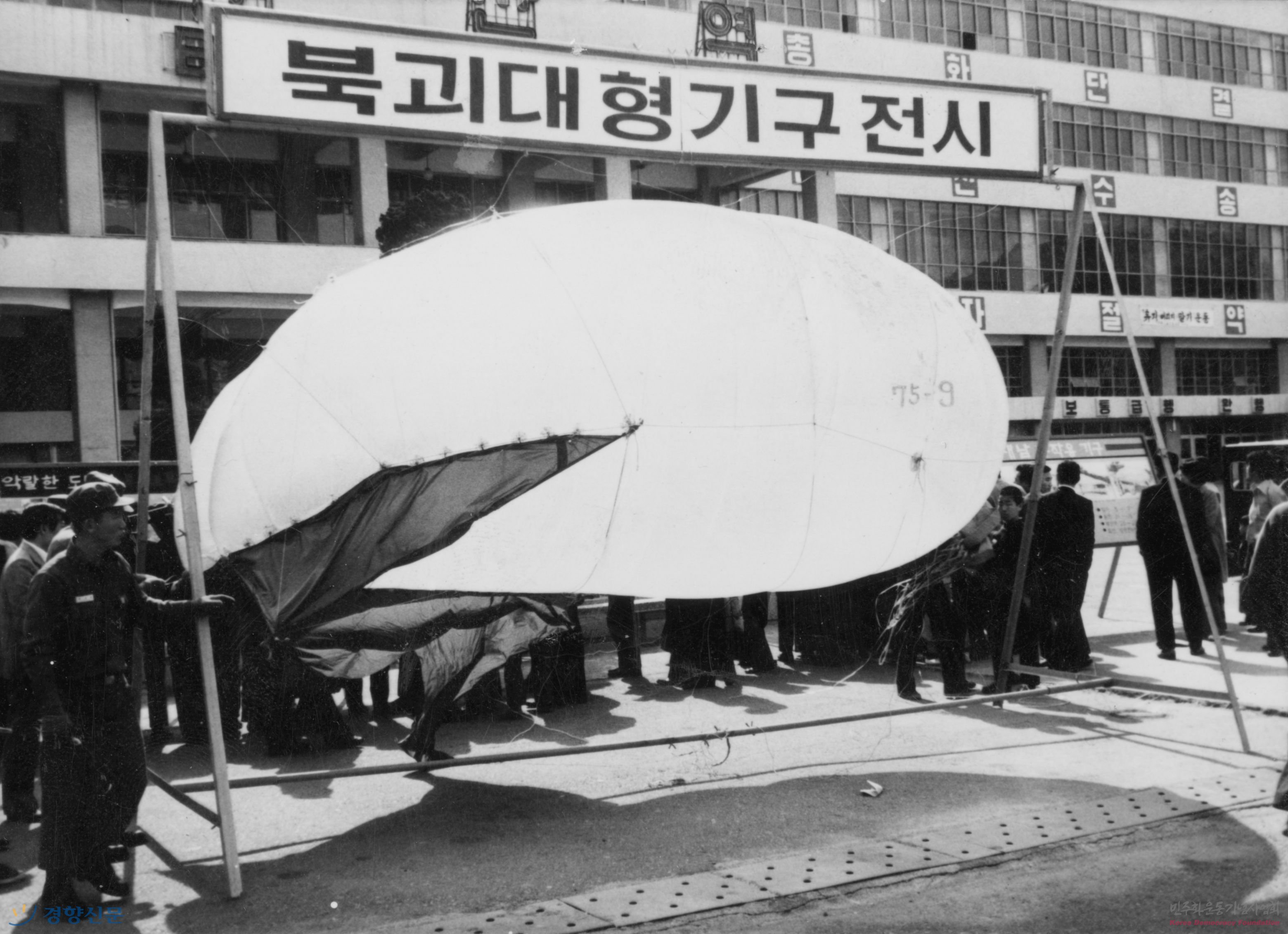북한에서 넘어온 대형 기구 전시하는 반공회관