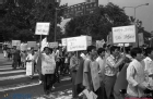 "재일한인북송반대전국위원회" 가 적힌 어깨띠를 두른 채 가두행진에 나선 시민들 3