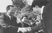 청와대를 떠나면서 전두환. 민관식과 악수하는 최규하