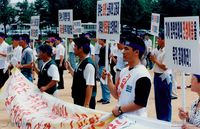 미국인 기업주의 자본철수를 반대하는 한국피코 노조원들